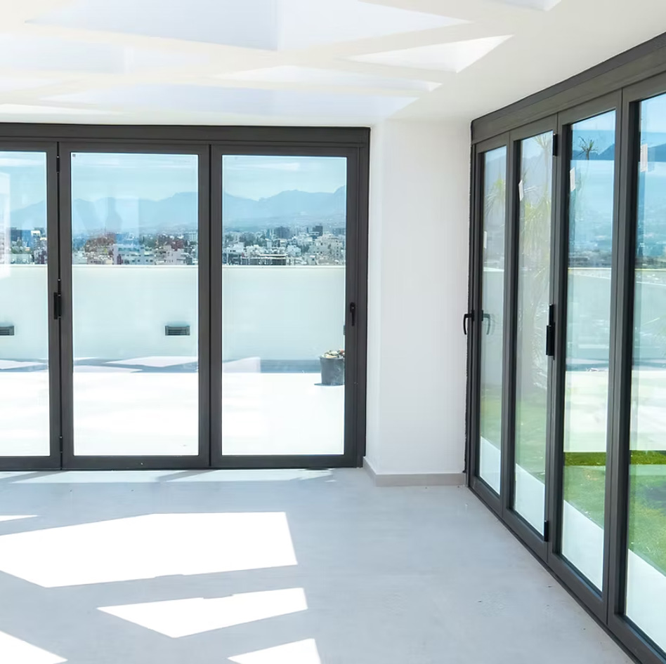 Our Aluna bifold, French, and single doors are available in any RAL colour to perfectly match your project. Standard stocked finishes include Grey 7016 (Matte), Black 9005 (Matte), White 9016 (Gloss), Grey 7016 on White 9016, Black 9005 on White 9016, Textured Grey 7016, and Mill Finish. Custom colours can also be requested for a truly bespoke aluminium bifold door design that complements any style or space.