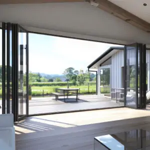 Our Aluna bifold, French, and single doors are available in any RAL colour to perfectly match your project. Standard stocked finishes include Grey 7016 (Matte), Black 9005 (Matte), White 9016 (Gloss), Grey 7016 on White 9016, Black 9005 on White 9016, Textured Grey 7016, and Mill Finish. Custom colours can also be requested for a truly bespoke aluminium bifold door design that complements any style or space.