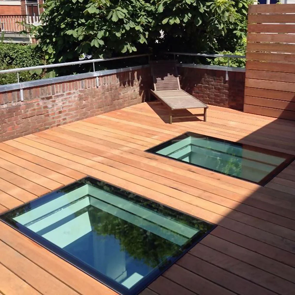 The Walk-on roof is available in clear obscure, sandblasted or a textured anti-slip finish providing safety, privacy and durability. Perfectly suited for balconies or areas requiring pedestrian access.