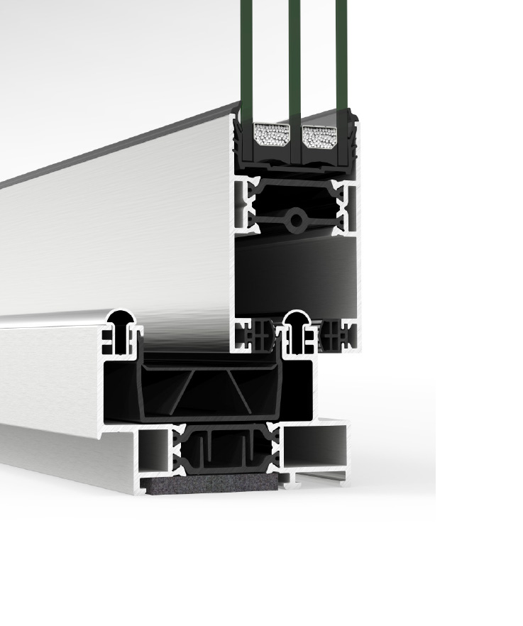 The Cortizo 4900 Sliding Door offers excellent thermal and acoustic insulation, supported by a glazing capacity of up to 36 mm and a 34 mm thermal break. It features a 35 mm interlock, allowing sash crossing thanks to the integrated handle with multipoint locking system. This system is also complient with building regulations giving you peace of mind.