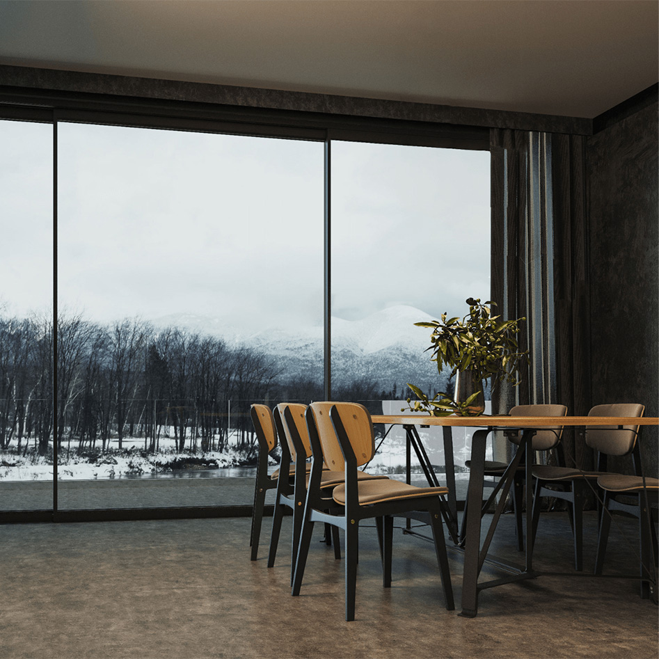 Alunet sliding doors help to frame the picturesque outdoors while providing your home with natural light. They form a transparent barrier, seamlessly integrating indoor and outdoor spaces.